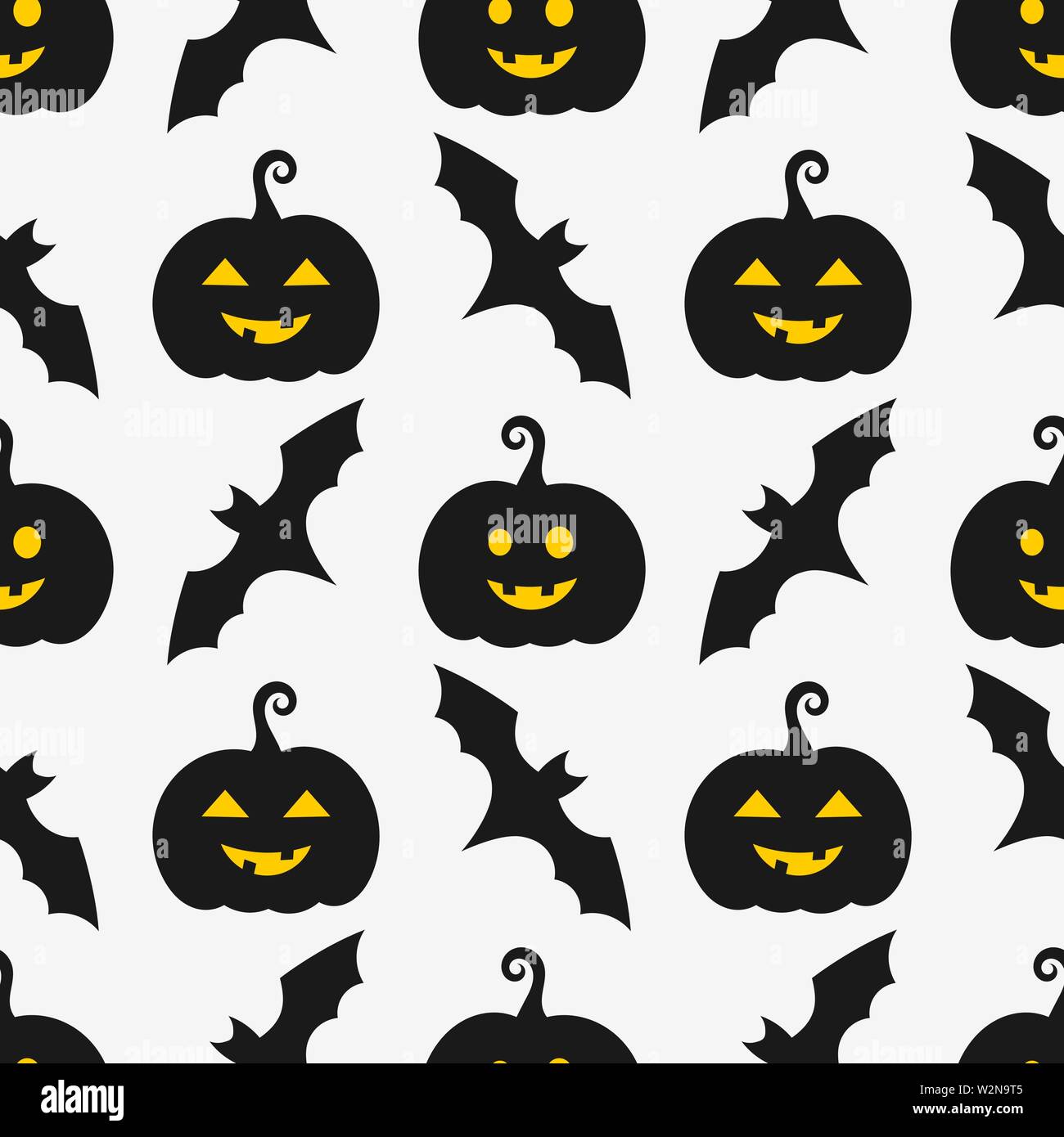Halloween Pumpkins And Bats Seamless Pattern Vector